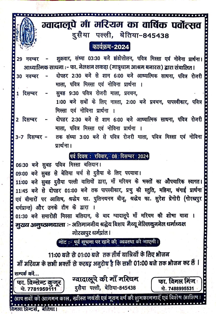 News/Events 13.33% Complete Read More... Read More... isai samuday ne betiya me nikali mata mariyam ki shobha yatra Read More... Mata Mariyam ki nikali gai shobha yatra Read More... Dhumdham se nikli mata mariyam ki shobha yatra Read More... Padri Dusiya me Mata Mariyam ki nikali gai shobha yatra, saikdo sradhaluyo ne liya hissa Read More... Nagar Main Nikli Mata Mariyam Ki Shobha Yatra Read More... Read More... Read More... Online Novena and Feast Read More...